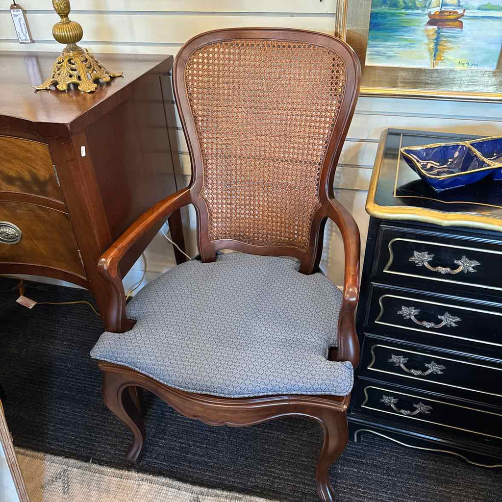 6 French Caned Side Chairs, 2 Arm Chairs - Navy Pads