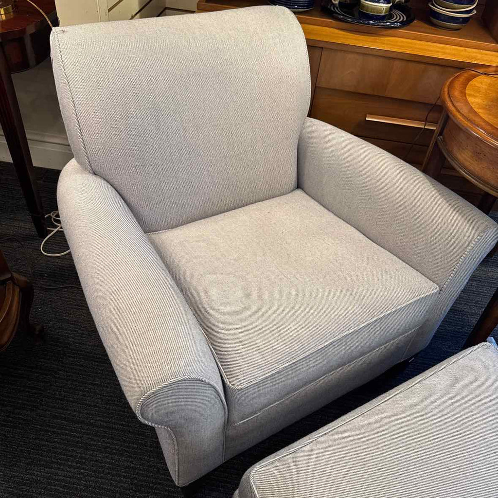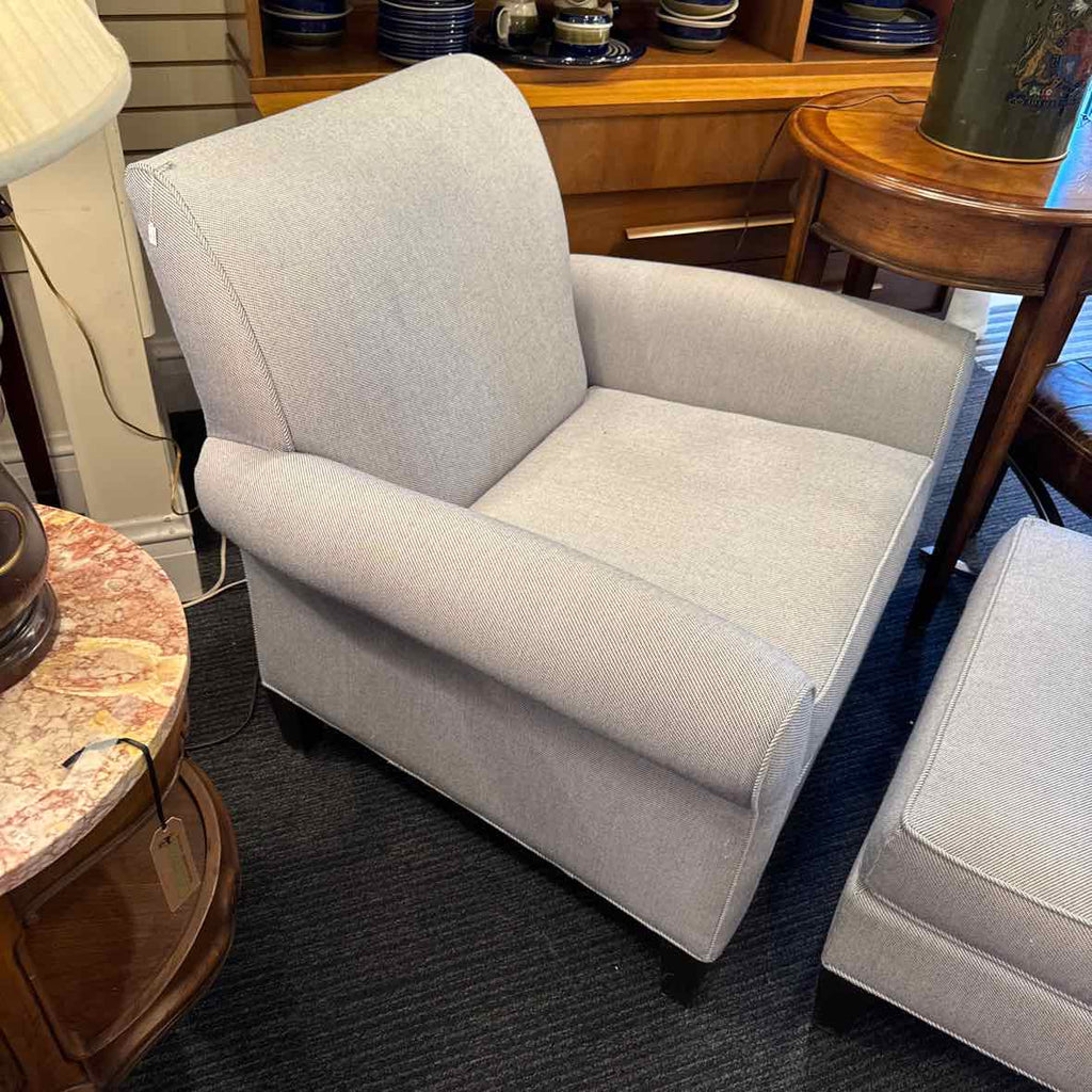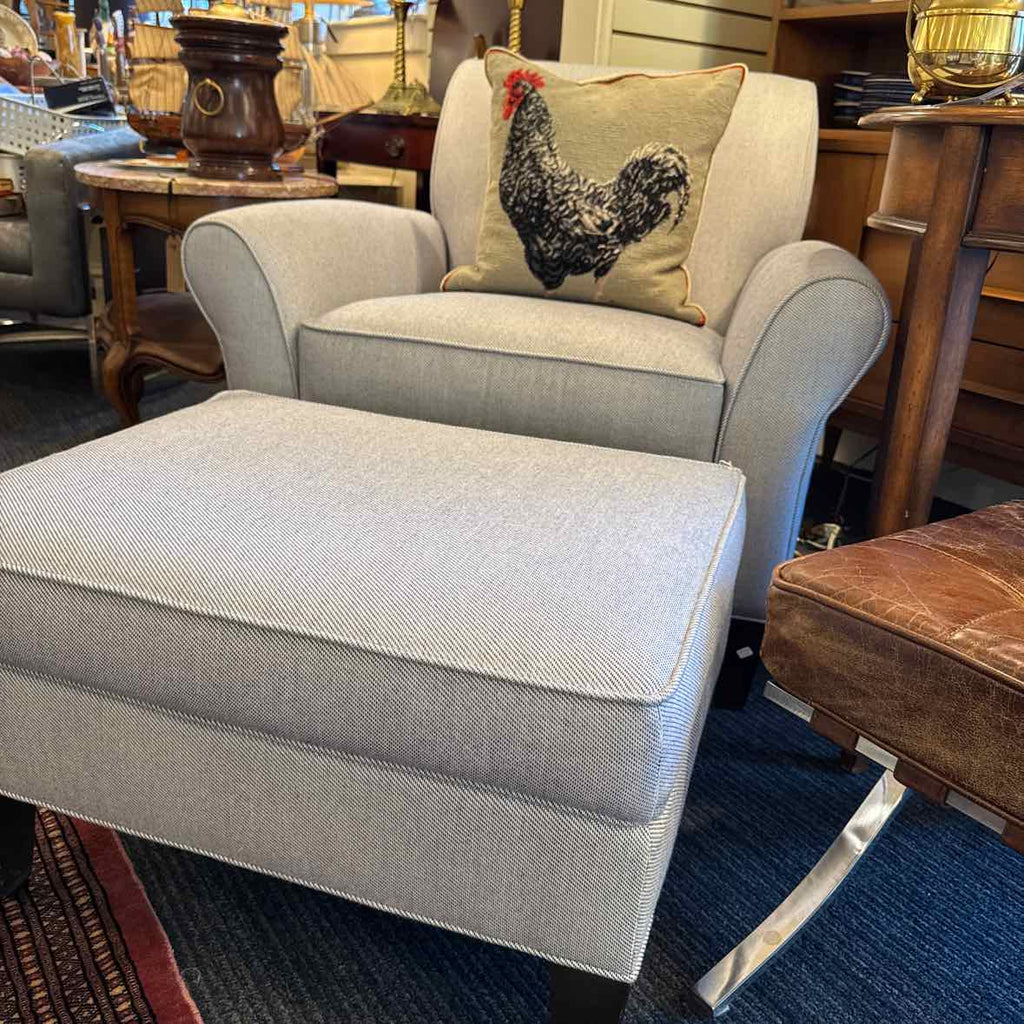 Ethan Allen Chair and Ottoman - Navy/Cream