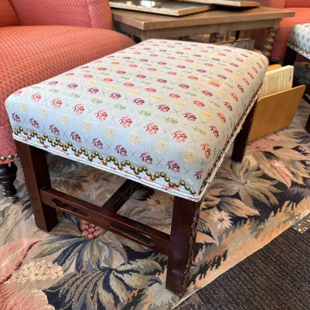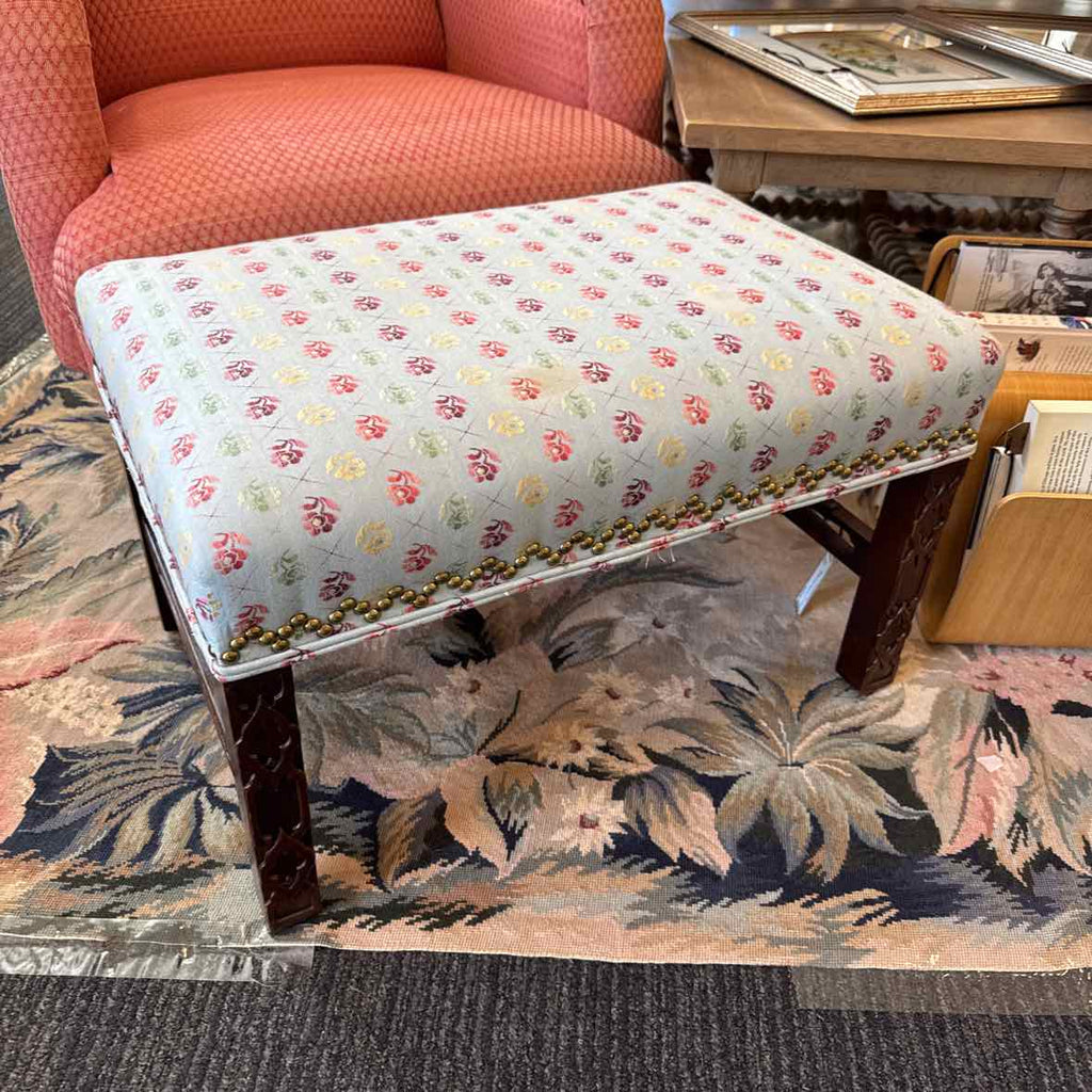 "AS IS stain" Pale Blue Chippendale Ottoman