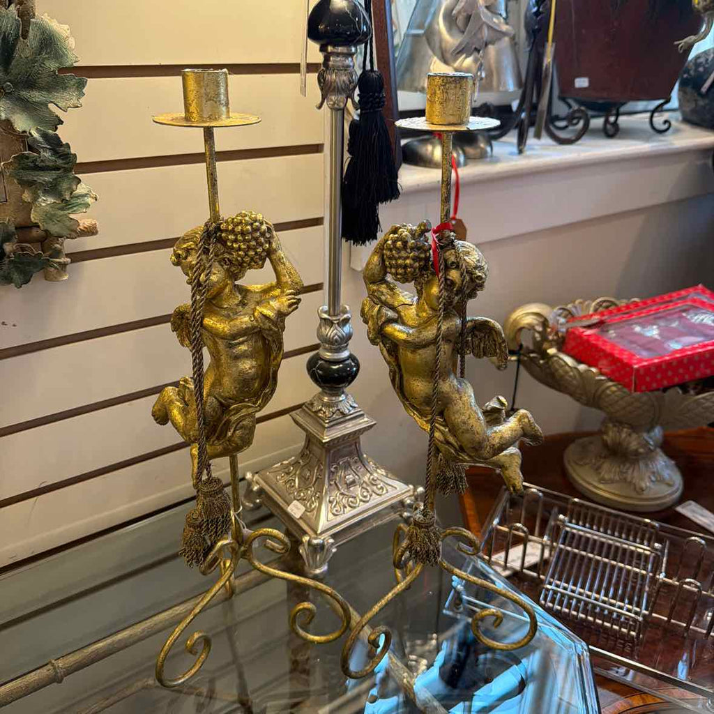 18.5" Pair Gold Angel Candle Holders