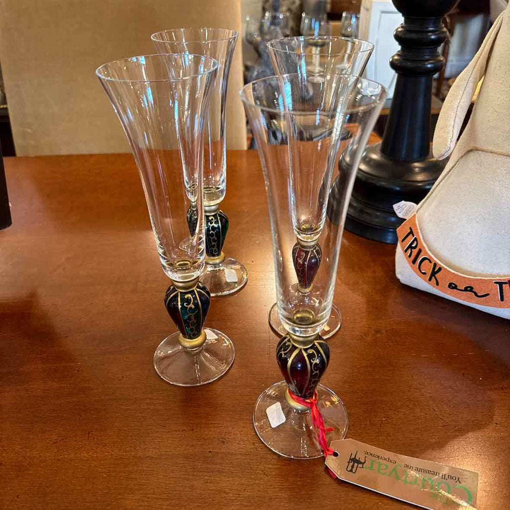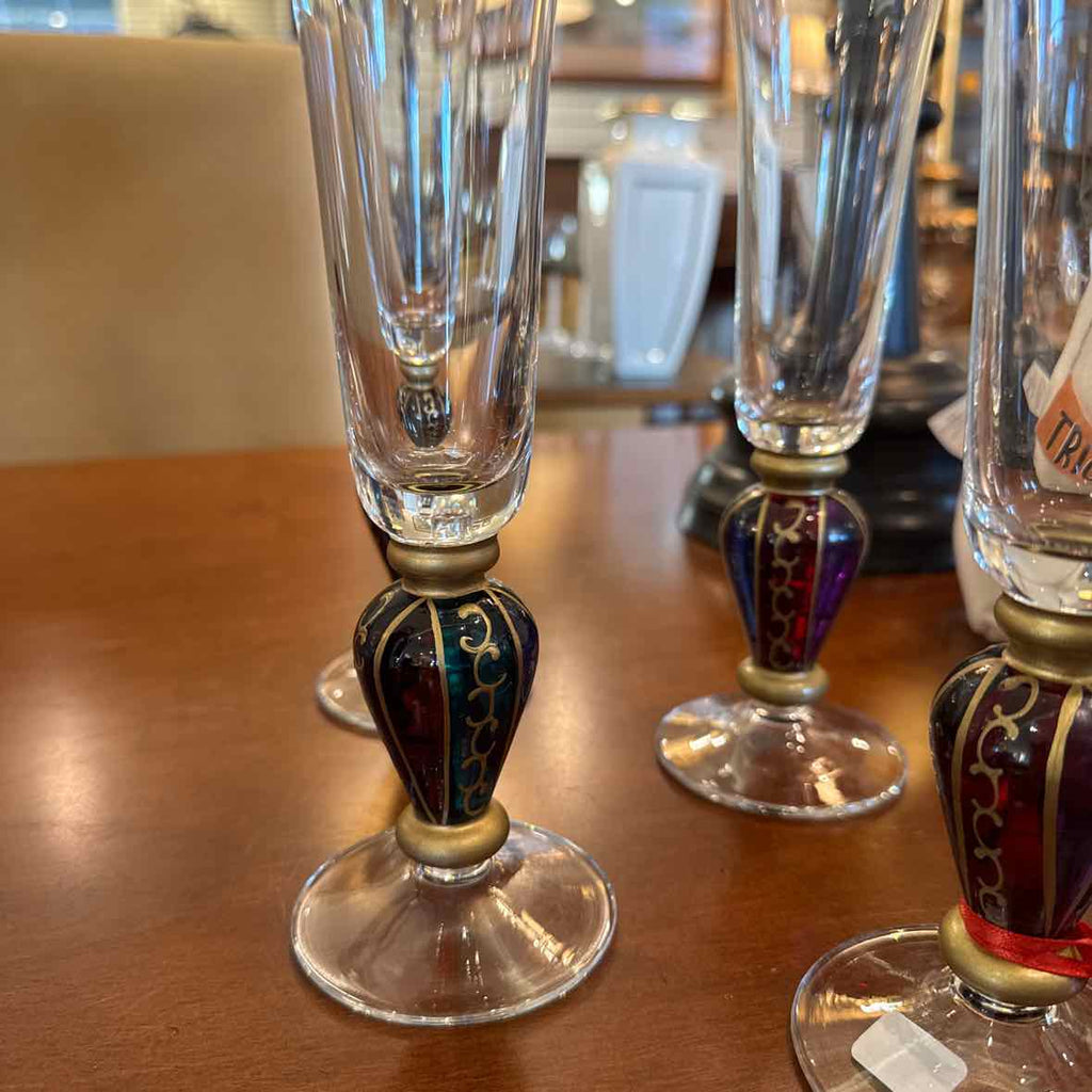 10" Set of 4 Hand-Painted Crystal Flutes - Czech Republic