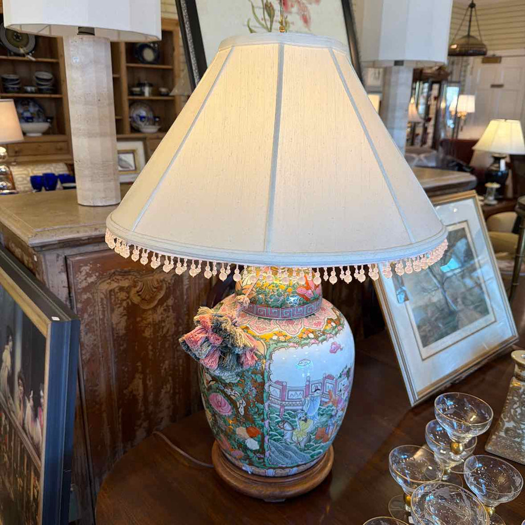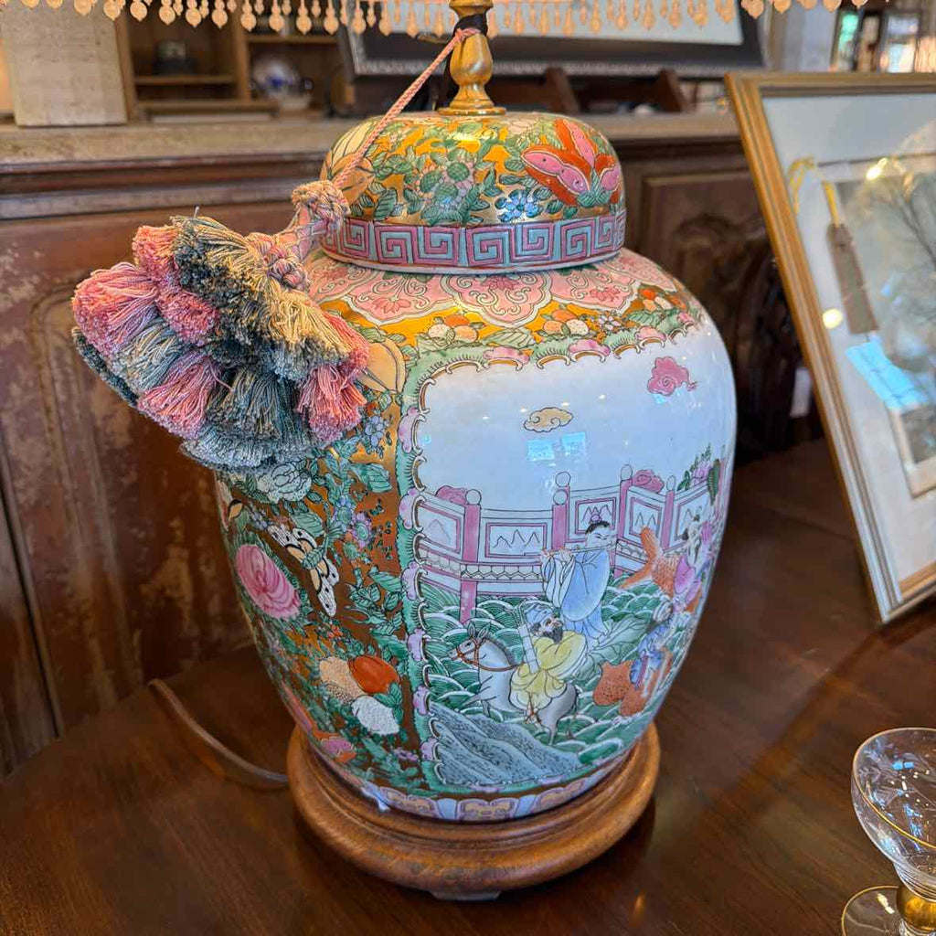 34" Asian Ginger Jar Lamp with Wood Base & Tassel
