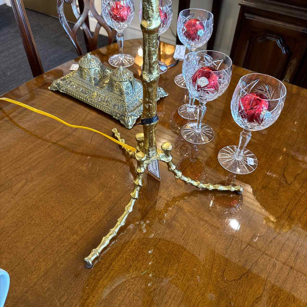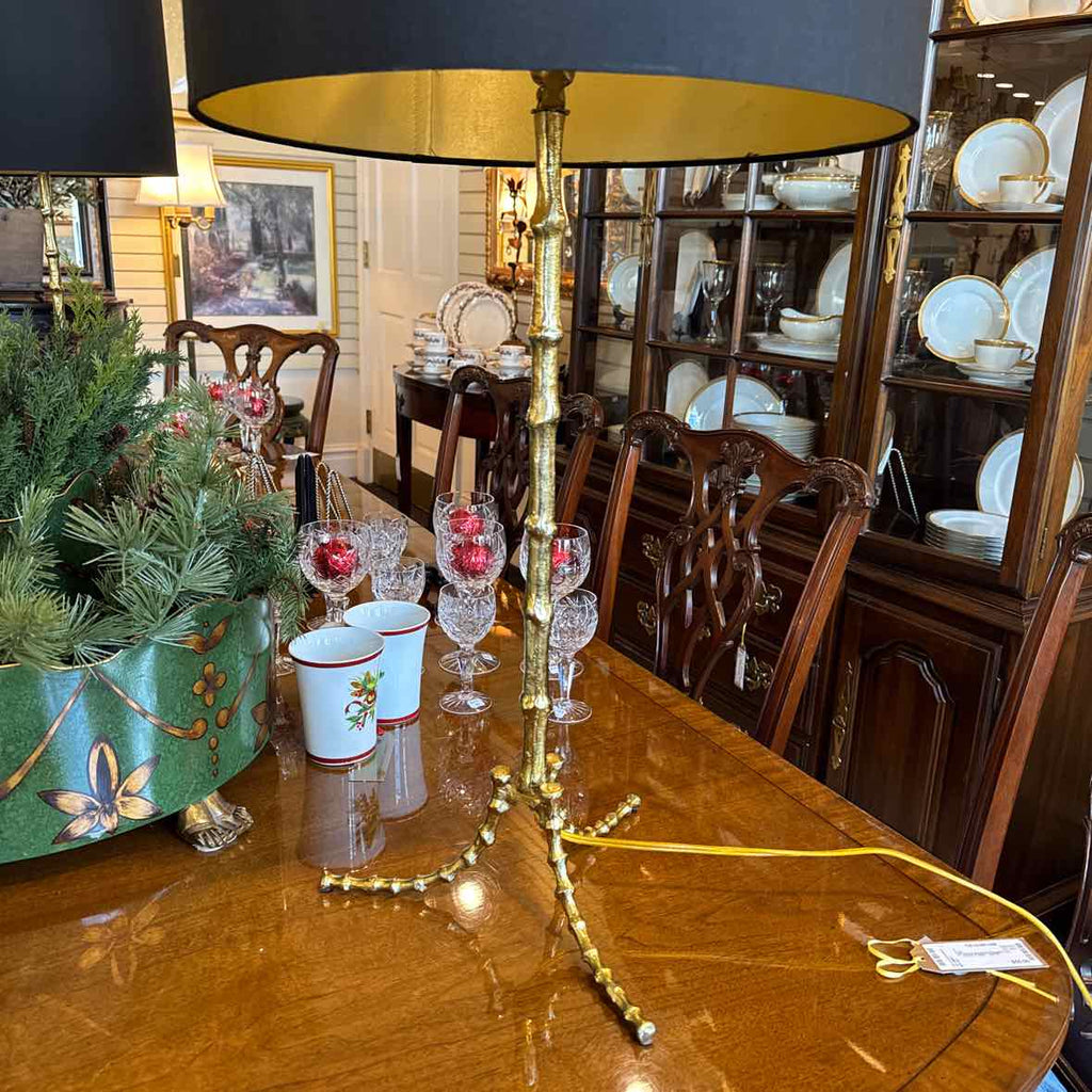 37" Pair of Gold Bamboo Lamps with Black Shades