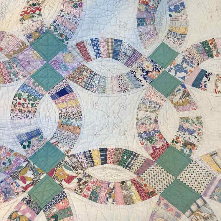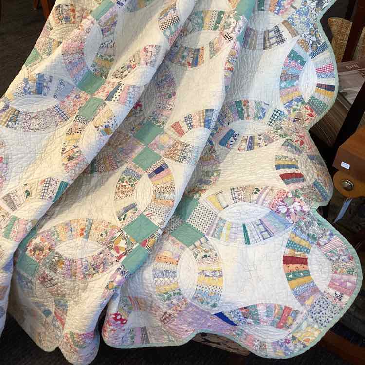 66 x76" Vintage Double Wedding Ring Handmade Quilt