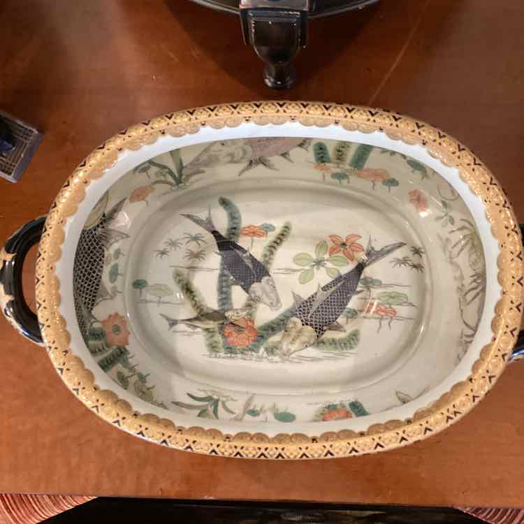 Chinese Handpainted Footbath w/ Pedestal Black/Gold
