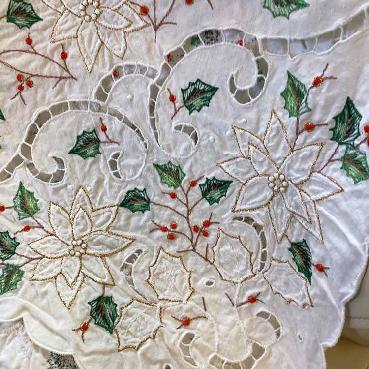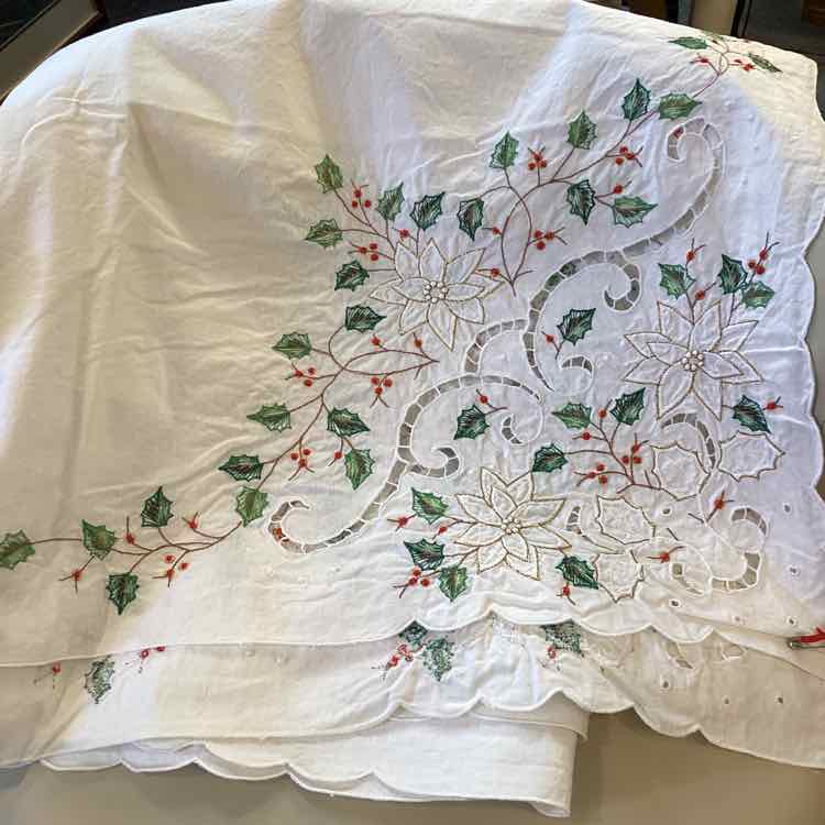AS IS 98" x 66" Tablecloth, Poinsettias on Cream