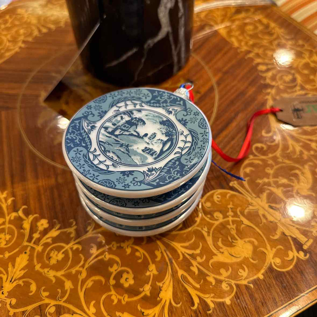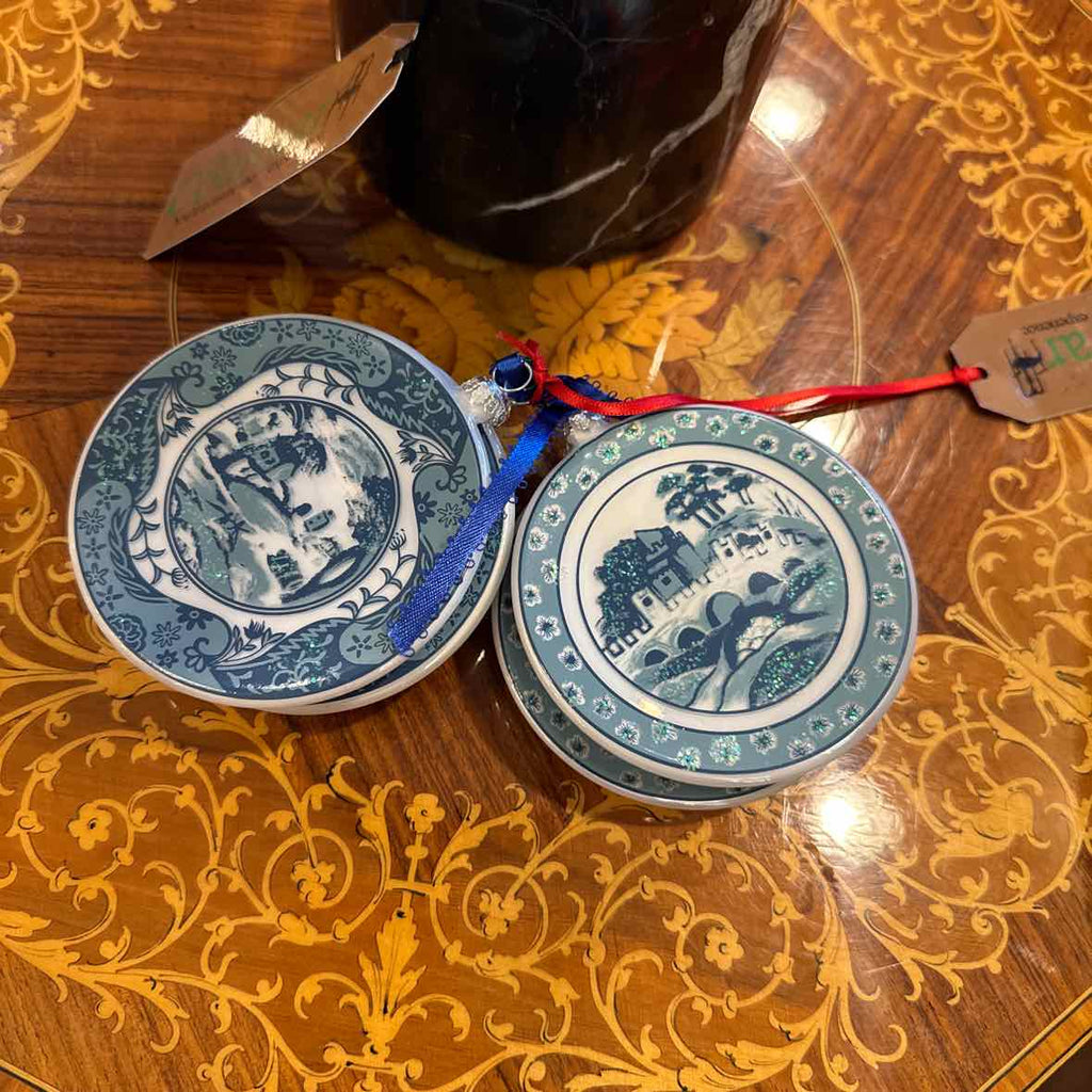 Set of 4 3.5" Round Blue/White Miniature Plate Ornaments