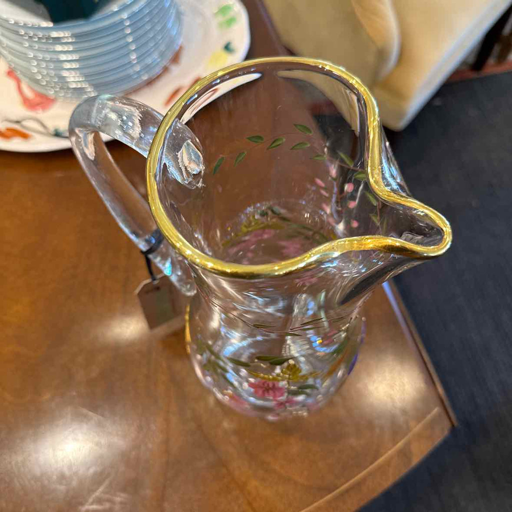 12" Floral Gold Rimmed Pitcher - Hand Painted
