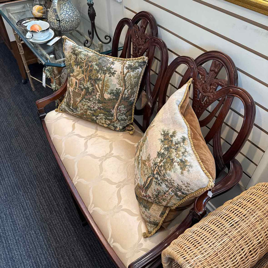 41" x 39" x 21" Wood Settee With Beige Fabric By Georgian Furnishing