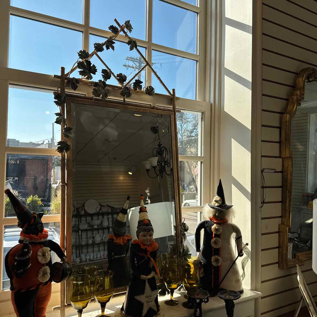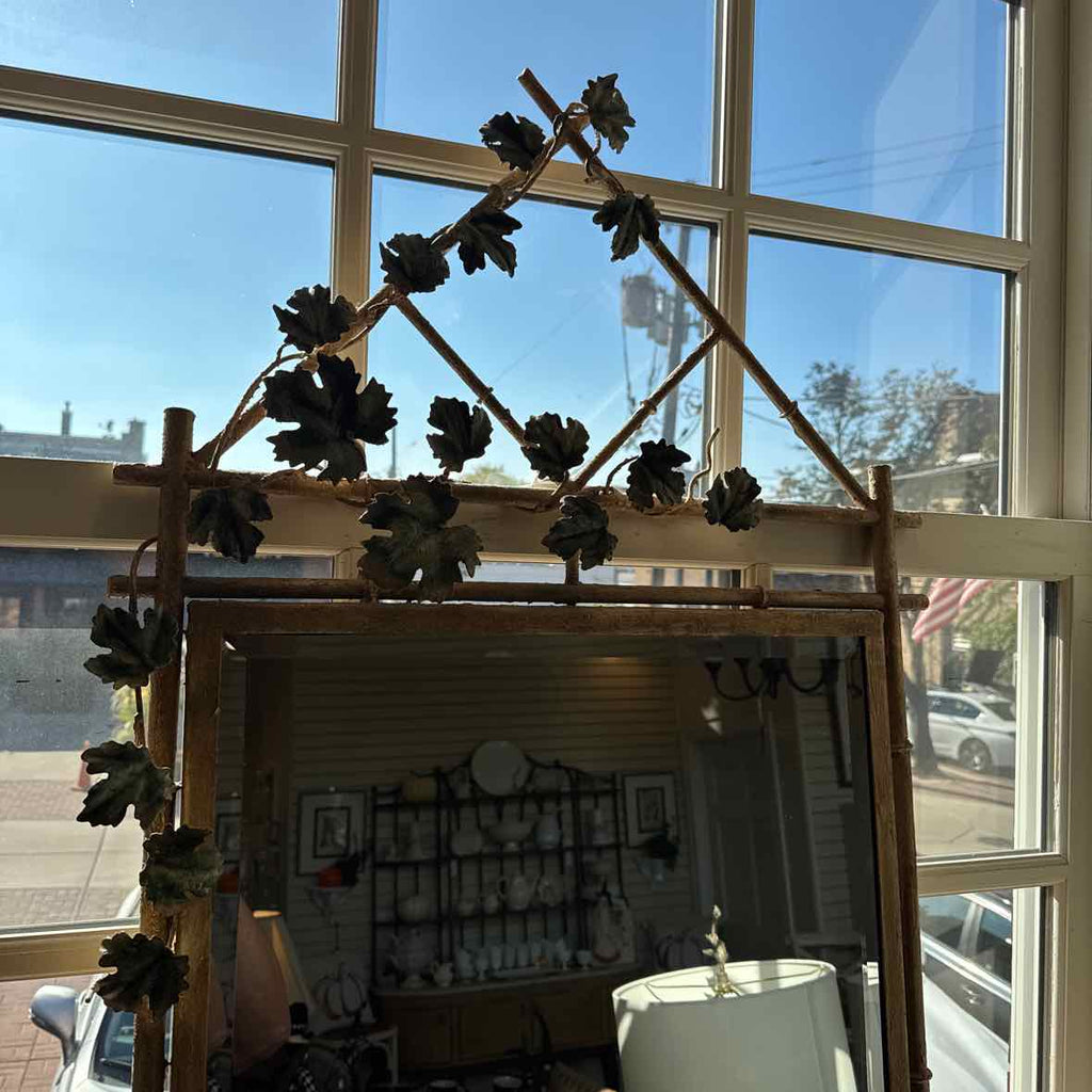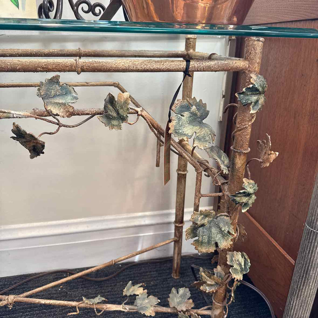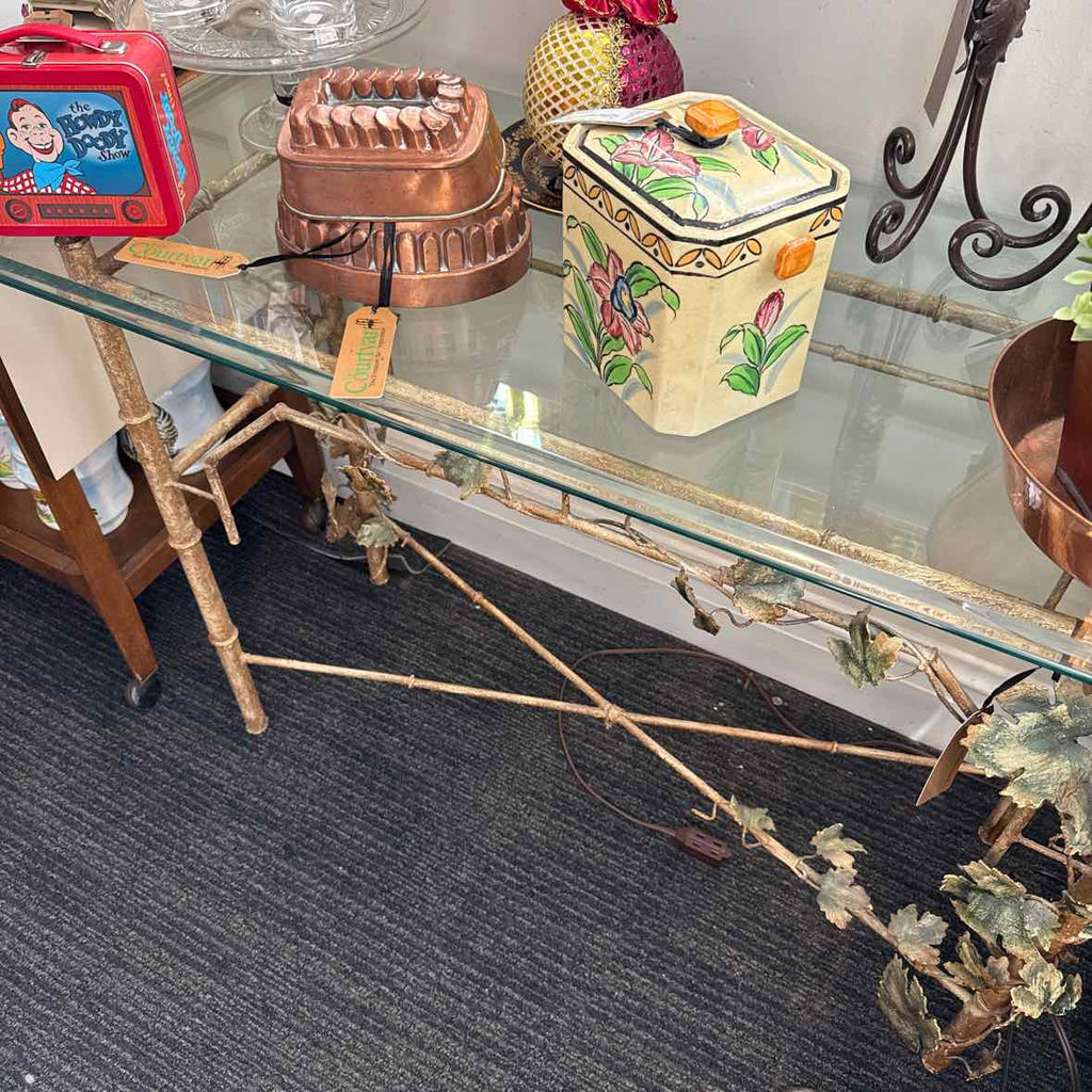 43" x 18" x 29" Console, Metal Base with Glass Top, Leaves. Matching 25" x 51" Mirror