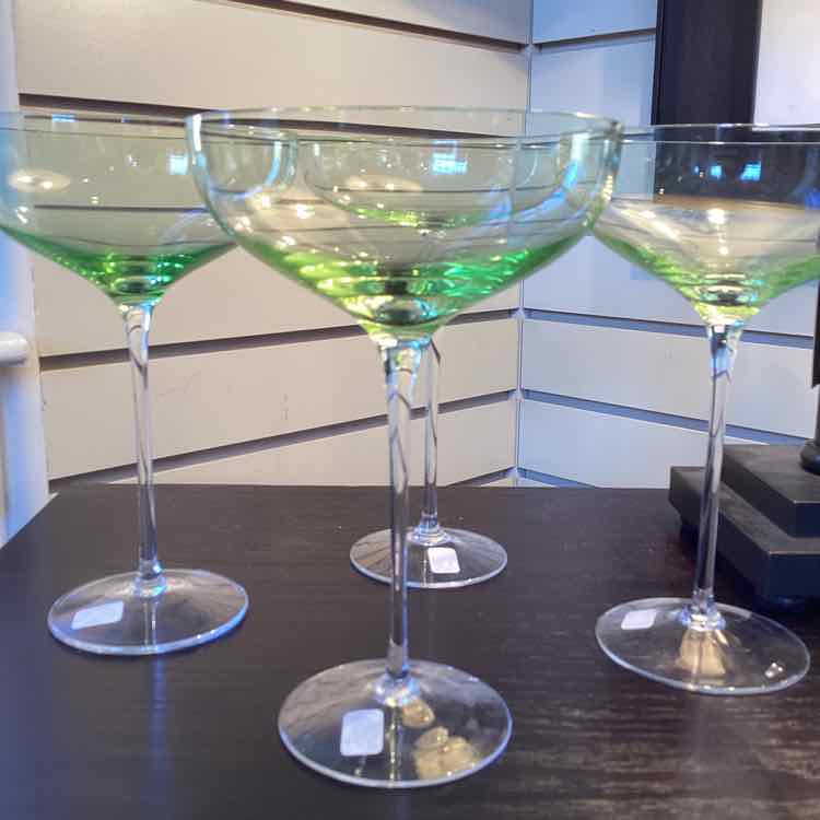5"x8" Four Green To Clear Cocktail Glasses