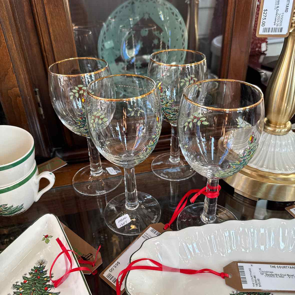 7" 8 Spode Christmas Wine Glasses
