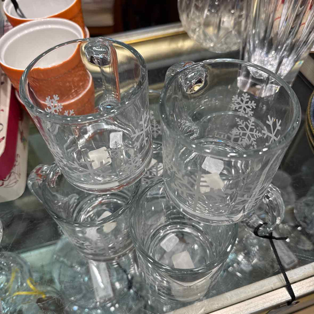 Set of 6 Crate & Barrel Glass Snowflake Mugs